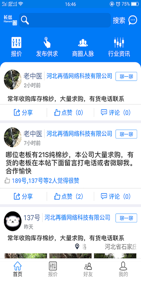 长丝圈安卓版APP,一款长丝行业的交流平台,帮助用户了解长丝行情,提供一站式的长丝服务,