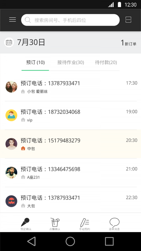 商户可以对消费者通过去嗨在线预订的包房订单惊醒实时管控,了解消费者预订状况;核销顾客订单;