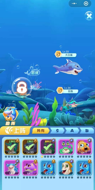 海底大动员是一款以海底为背景,各种海底生物对决的游戏,游戏核心玩法就是组建自己的海底部队,去对抗其他鱼类,等自己足够强大了,就可以点右下角的“挑战BOSS”,然后就能进入下一关了!
