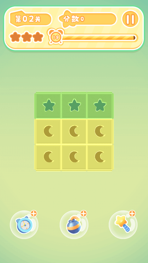 2、当魔方在指定的时间内被消除时,完成每一步所需的条件可以解锁星星;
