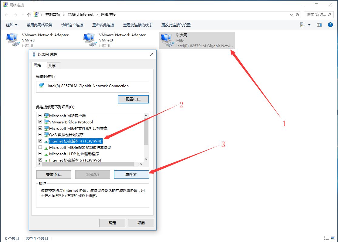 1、设置网络重新连接,在网络连接中重新设置网络的ip地址,方法如下图;