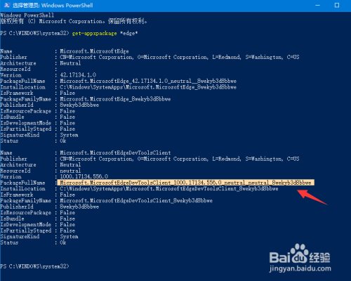 移除microsoft edge接着输入命令Remove-appxpackage 接packagefullname包名