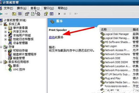 在服务中找到print spooler服务,把它启动,这样就可以解决雨林木风winxp下打印后台程序服务没有运行的问题了。