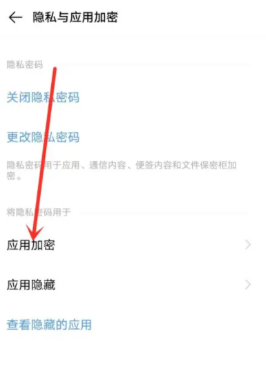 输入隐私密码,然后点击【应用加密】设置项。