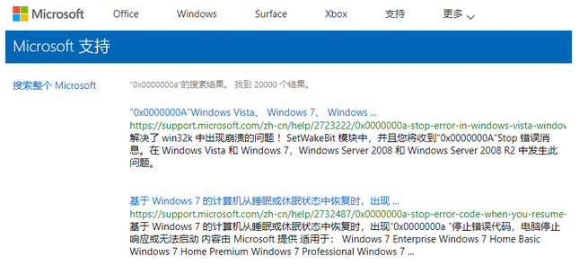 3、在代码查询页面点击【搜索】,转到微软的官网,查找相关的蓝屏信息。