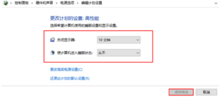 4.或者打开控制面板,依次找到硬件和声音→电源选项→更改计划设置,设置关闭显示器的时间;