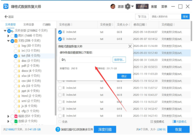 3、数据扫描完成之后,选择我们需要恢复的文件,点击“恢复”。