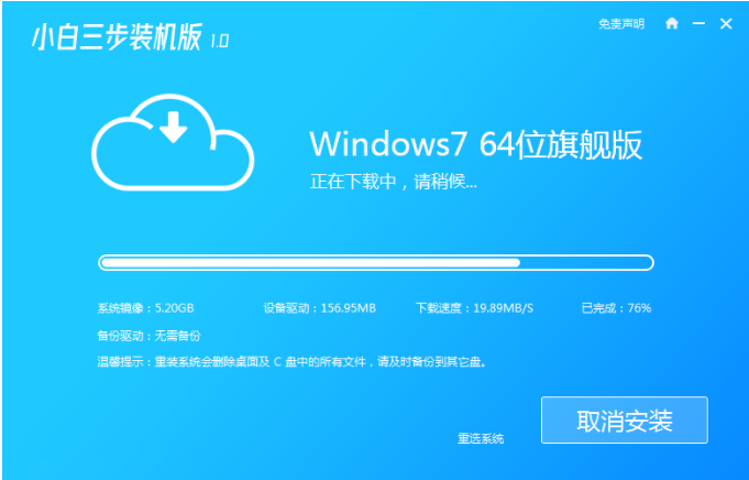 2、耐心等待工具将会自动下载win7系统文件等等。