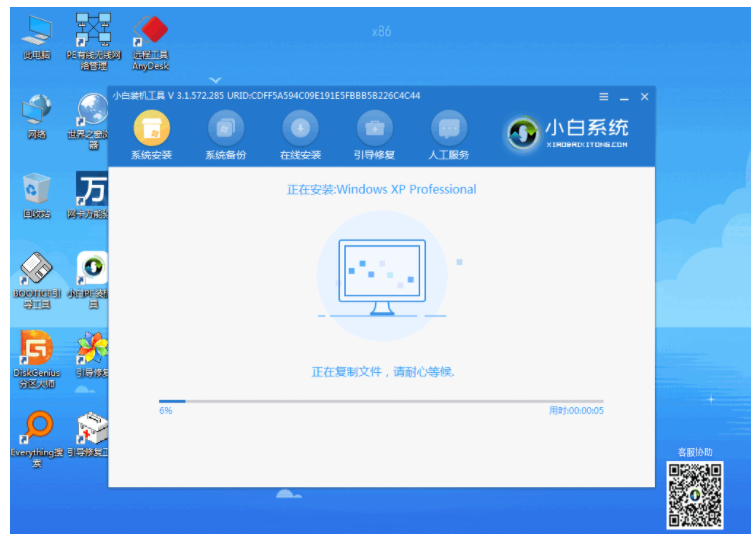 2、此时,小白会自动下载所需要的安装版xp系统以及 PE ,等待下载完成后,直接进入安装部署。