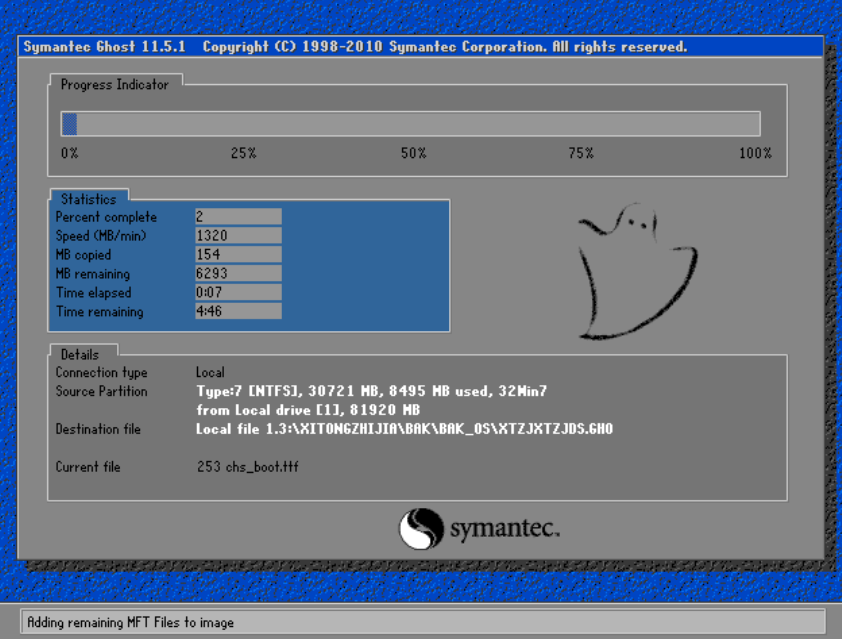 8、开始了系统的备份,完成后即可在备份目录下看到备份的系统镜像