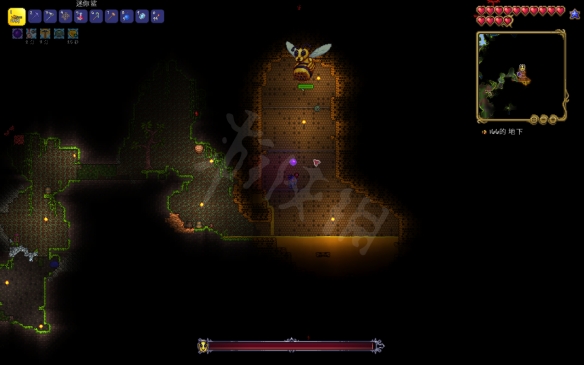 准备完毕后打碎下面这个泡在蜂蜜中的小罐子就可以召唤boss了,需要一提的是,接触蜂蜜后会给自己附加一个加快回血的buff,打boss途中可以不断给自己续这个buff。只要接触到液态蜂蜜即可获得这个buff,离开蜂蜜后buff会在身上粘滞数秒,不必一直泡在蜂蜜中,太不灵活。