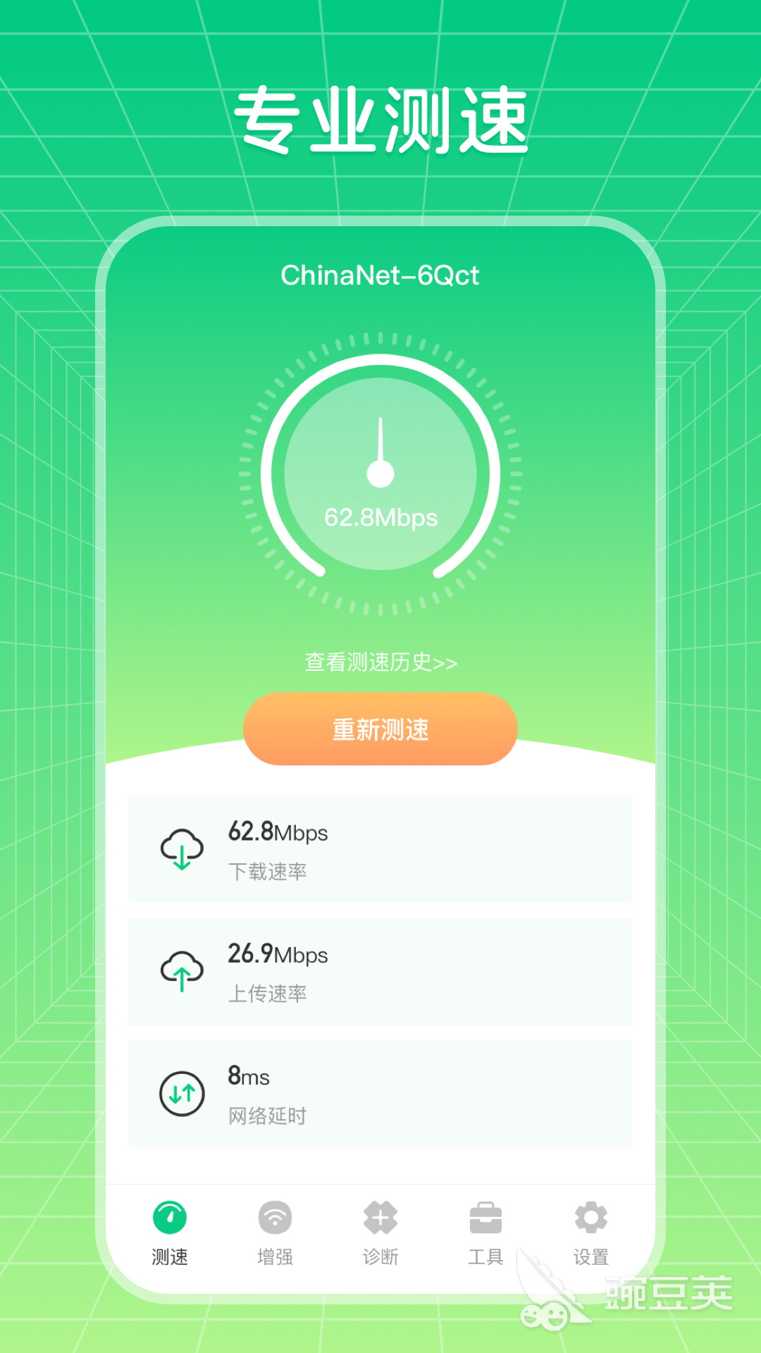 天天WiFi钥匙这款软件是一款可以让我们实现随时随地快速上网的App软件,在这款软件中我们能够免费的连接上密码难度较低的网络,这样能够让我们体验极致的上网速度。同时,如果我们对于目前连接网络的网速有一些疑问的话,可以直接点击手机界面中的测速功能,能够让我们更加精准且直观的了解目前网络的上传及下载甚至是延时的速度信息数据。