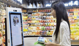 在支持蜻蜓刷脸的地方,选购商品,在收银台扫描商品条码,自动计算金额