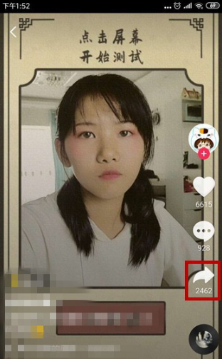 然后会播放别人的测前世特效视频,点击右侧的【分享】功能,如图所示。