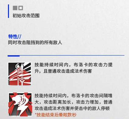 技能1:技能持续时间内,布洛卡的攻击力提升,且普通攻击造成法术伤害。