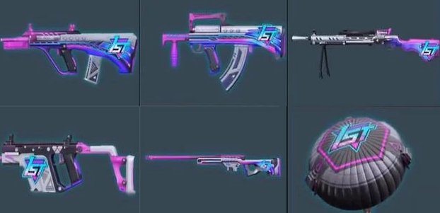 3、枪械、降落伞皮肤:枪械皮肤包括维克多、AUG、AWM、GROZA、DP28